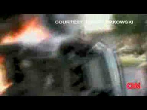 The SUV had collided with a tree and burst into flames trapping both a mother and her son, two off-duty firemen and one off-duty police officer managed to free the mother but the child remained trapped, with the flames getting closer the child was saved and is expected to make a full recovering.